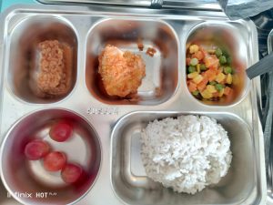 Para siswa menikmati makanan bersama-sama di ruang kelas dan area sekolah yang telah disiapkan. Wajah ceria dan semangat terlihat saat mereka menyantap hidangan yang disediakan. Kegiatan makan bersama ini juga menjadi sarana pembelajaran tentang kebiasaan hidup sehat, kebersihan, serta pentingnya mengonsumsi makanan bergizi.